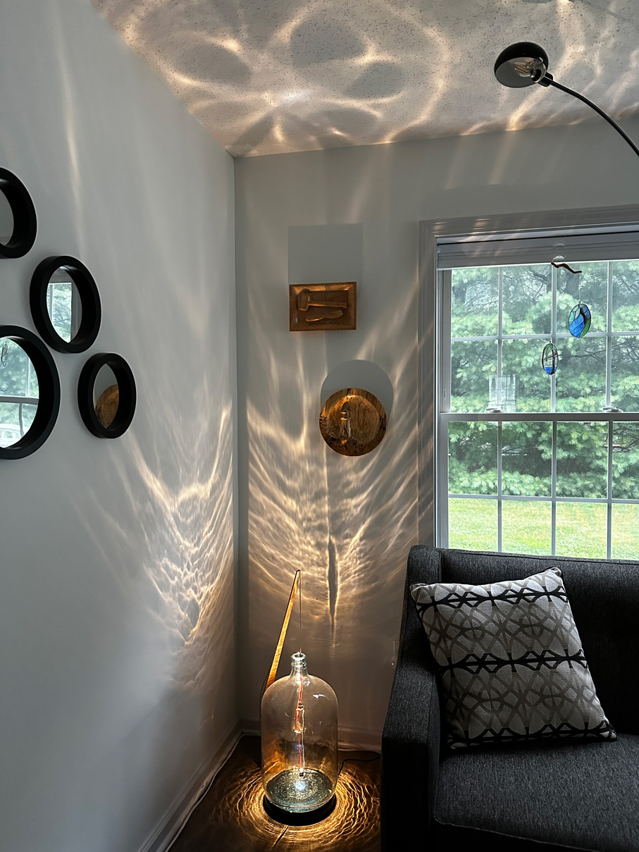 I'm a New England artisan working with stained glass and wood. I've always enjoyed making things with my hands, from my first real job at a pine furniture shop, and that continued on for years as a residential carpenter, until a pair of injuries forced me to retrain and leave the trades.